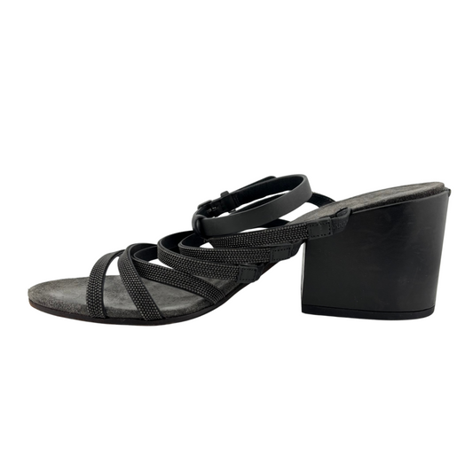 Brunello Cucinelli Grey Suede Caviar Strap Heel Sandals, 39.5