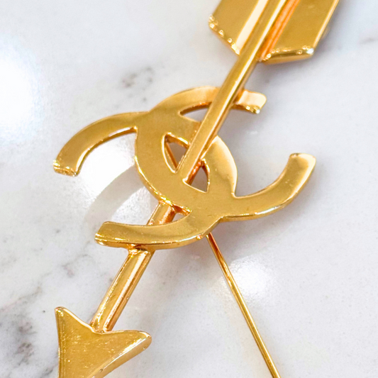 Chanel Gold CC Arrow Brooch Pin