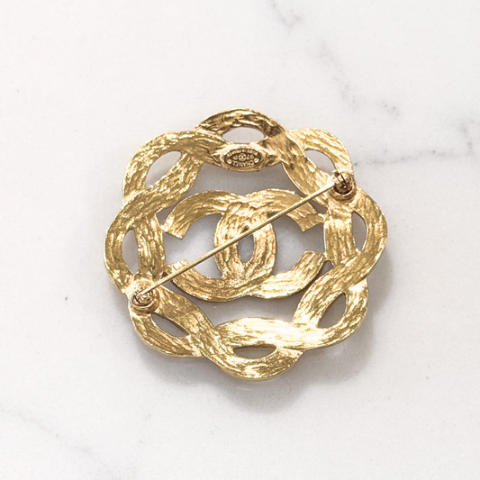 Chanel Gold Tone Wavy CC Brooch (Spring 1997)