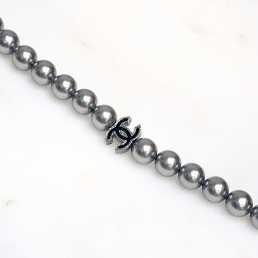 Chanel Gray & White Faux Pearl Necklace