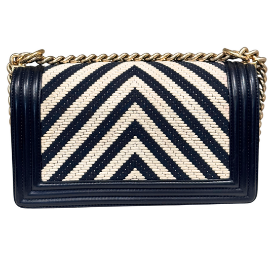 Chanel LeBoy Navy & Burgundy Woven Old Medium