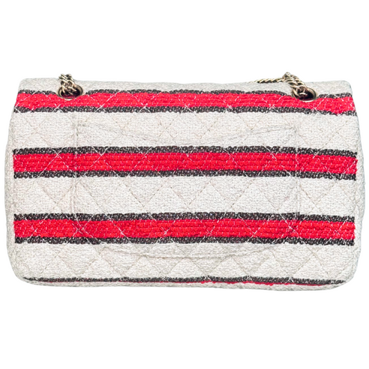 Chanel Red & Cream Striped Double Flap
