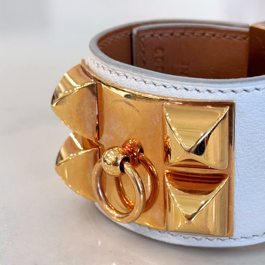 Hermes White Leather Collier de Chien Leather Wrap Bracelet