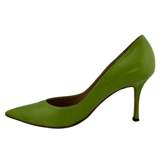 Manolo Blahnik Green Leather BB Pumps, 39.5
