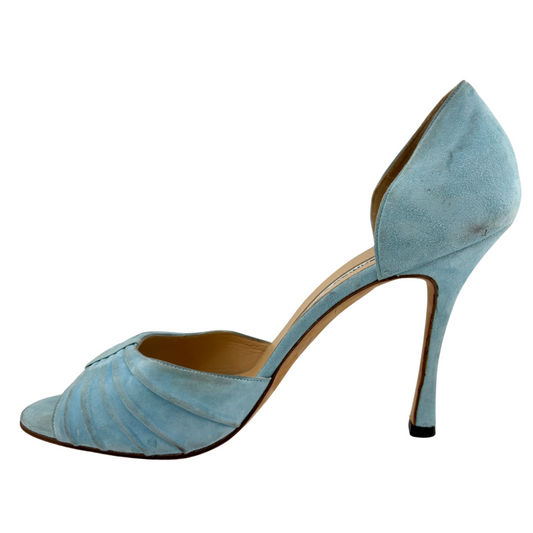 Manolo Blahnik Blue Suede Peep Toe Pump, 39.5