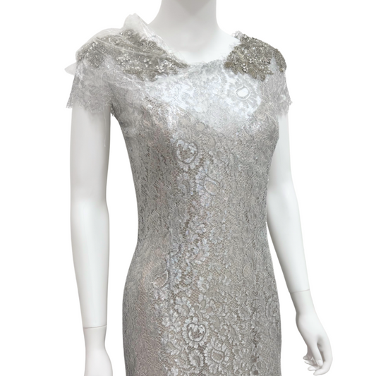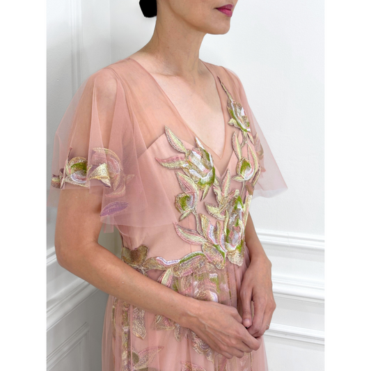Marchesa Notte Pink Floral Applique Tulle Gown, 8 (NWT)