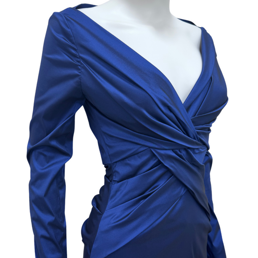Talbot Runhof Blue Poly Blend Ruched Waist Dress, 6 (NWT)