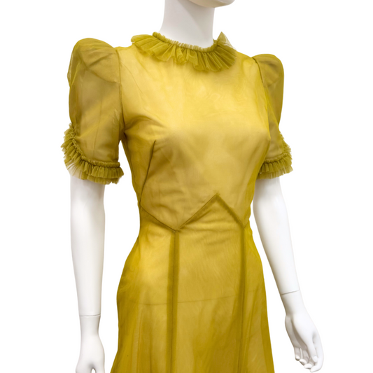 The Vampire's Wife Mustard Lace Ruffle Puff Sleeve Maxi Dress