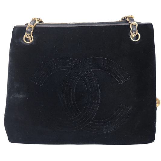 Chanel Black Velour Decacoco Shoulder Bag (1991-1994) (Vintage)