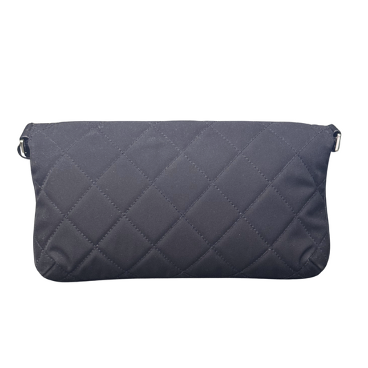 Chanel Black Leather Trim Quilted Canvas Flap Bag