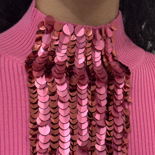 Delpozo Pink Ribbed Merino Wool Sequin Sweater, M (NWT)