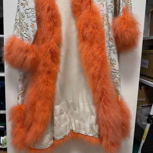 1950's Silver Floral Brocade Orange Fur Trim Coat