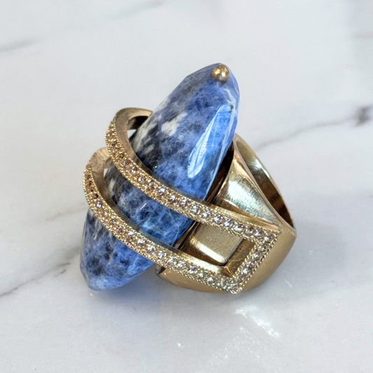 1989-1997 RARE Blue Sodalite Stone Gold Ring (As Is)