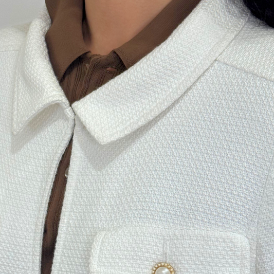 Chanel Cream Tweed Stitched Hardware Jacket, 38