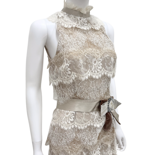 2000'S SILK LACE CRYSTAL BOW MINI DRESS