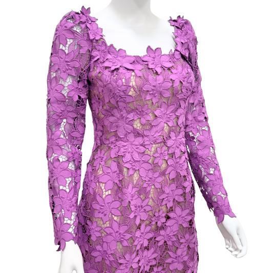Oscar de la Renta Purple Floral Lace Maxi Dress, 8
