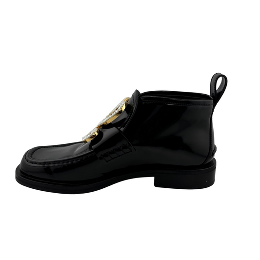 Loewe Patent Leather Beaded Logo Ankle Boot, 38