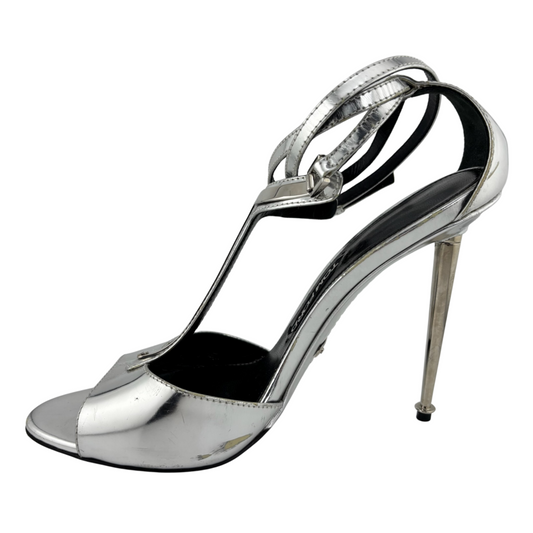 Rene Caovilla Grey Crystal Ankle Wrap Sandal, 40