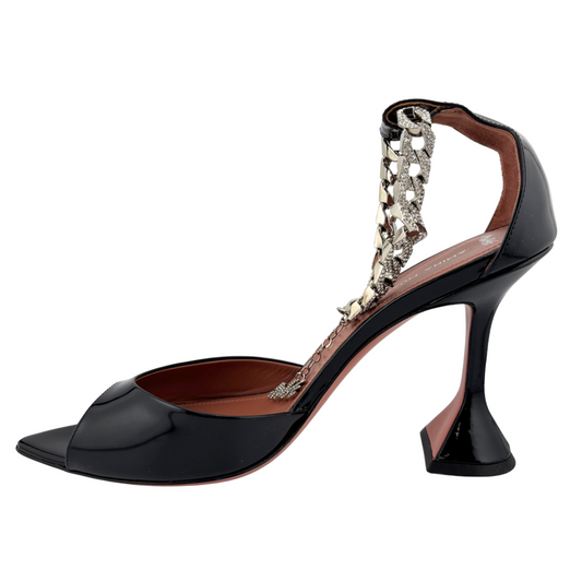 x Awge Black Patent Leather Ankle Chain Flacko Heel, 39