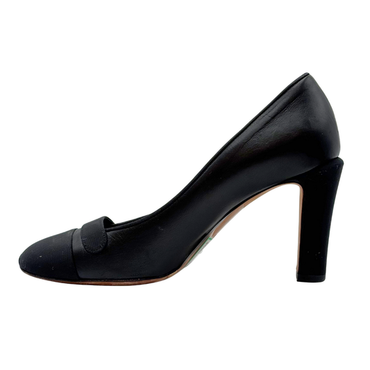 Chanel Black Leather And Satin CC Pearl Pump, 36.5