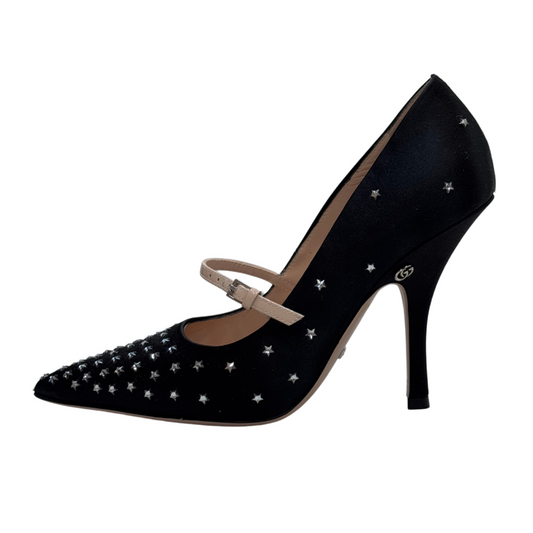 Gucci Black Satin Star Embellished Pumps, 35.5