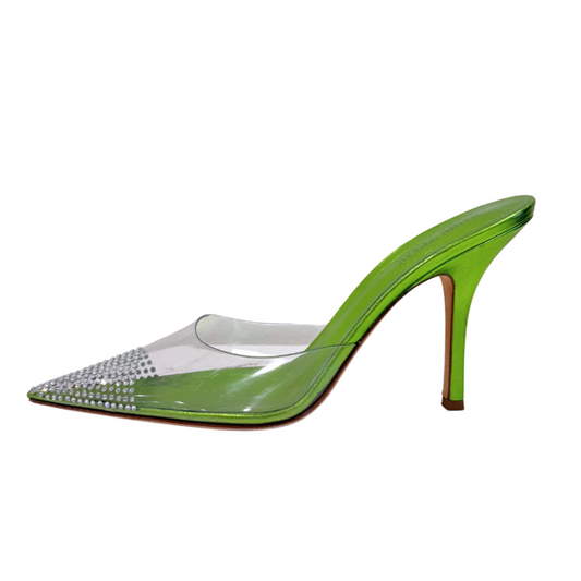 Paris Texas Holly Cherry Green Rhinestone Mules, 41.5