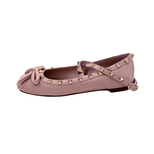 Valentino Pink Satin Rockstud Ballerina Flats, 36