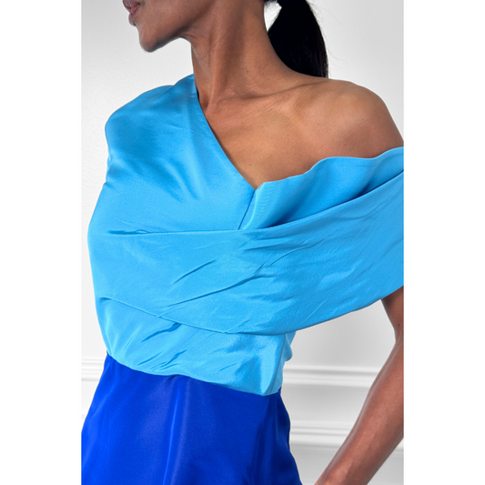 Rosie Assoulin Blue Colorblocked Cocktail Dress, 4 (NWT)