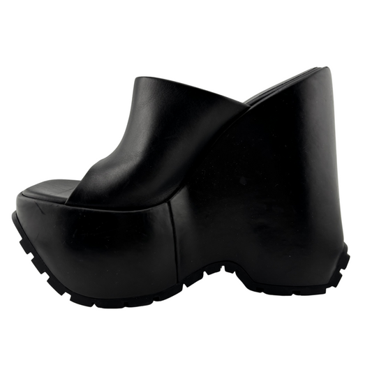 x Awge Black Patent Leather Ankle Chain Flacko Heel, 39