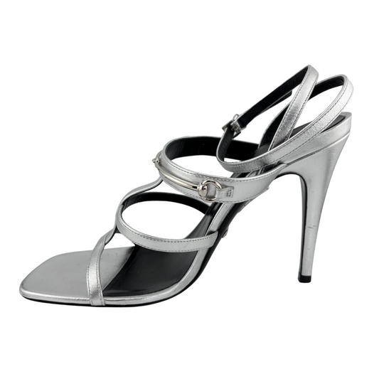 Gucci Silver Metallic Horsebit Caged Heels, 38.5