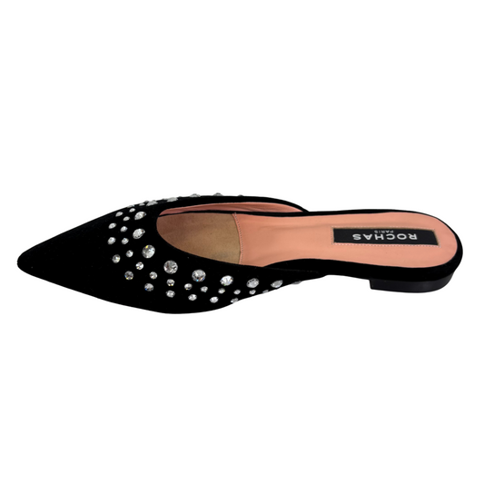 Rochas Velvet Rhinestone Mule Flats, 37.5