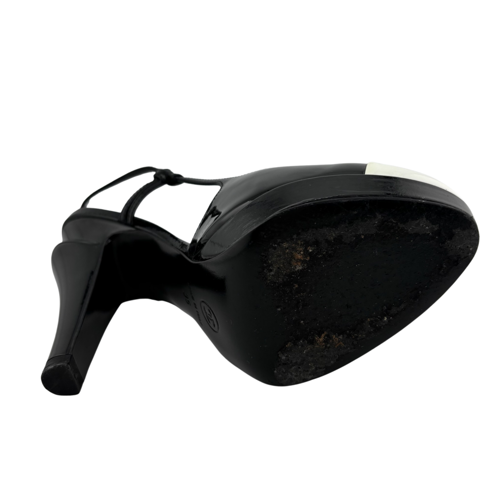 Chanel Black & White Cap Toe Patent Slingback Heel, 35