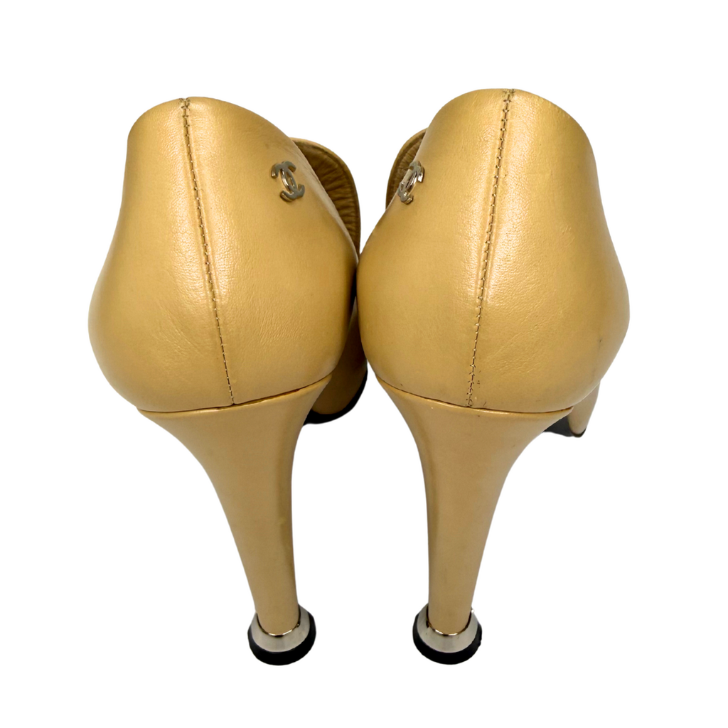 Chanel Two-Tone Leather Silver CC Detail Heel, SZ 38.5