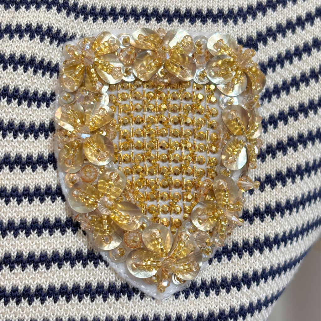 Christian Dior Cream & Navy Stripe Cotton & Silk Embellished Dress, 38