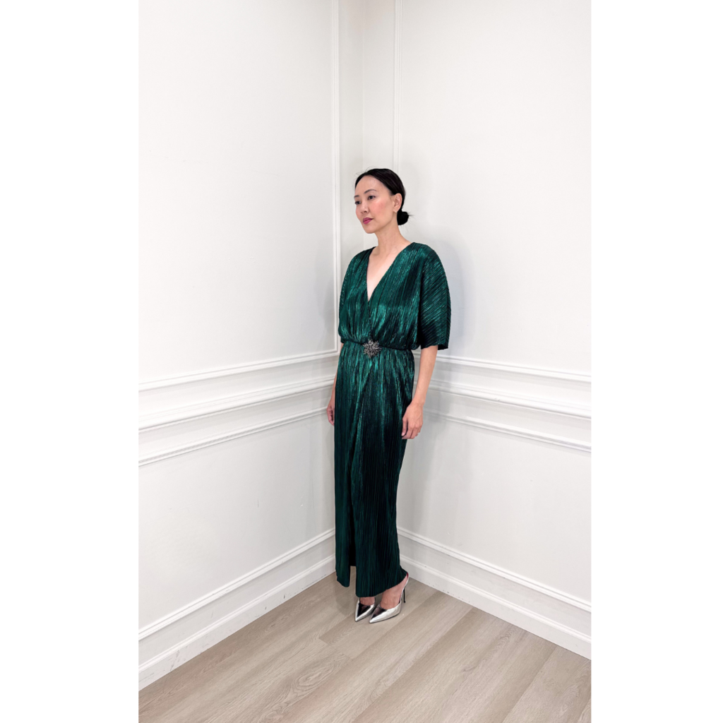 House of Harlow Green Metallic Snowflake Brooch Dress, S