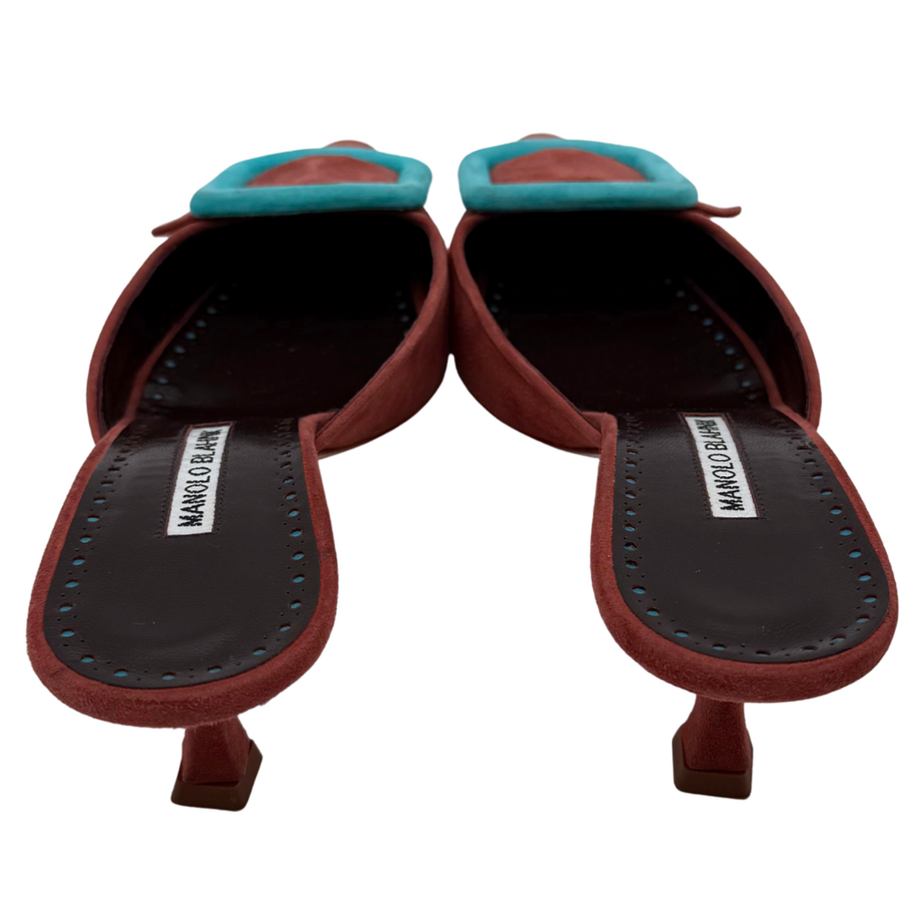 Manolo Blahnik Maroon Suede Kitten Heels, 38.5