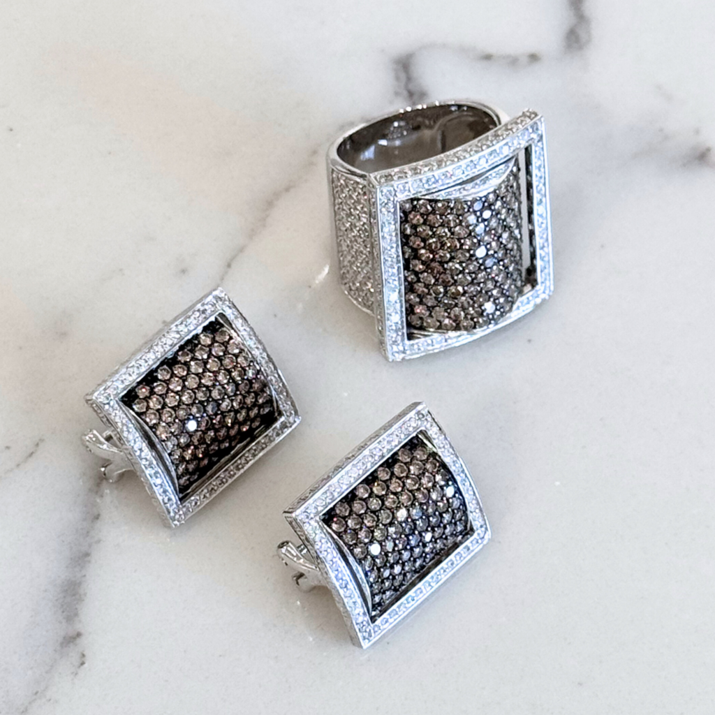 Square Cognac 18K Diamond Ring